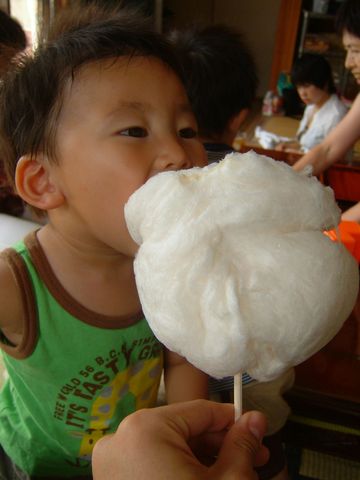 人生初の綿あめ。しょっぱい系のほうが好きな凪は一口で退散w