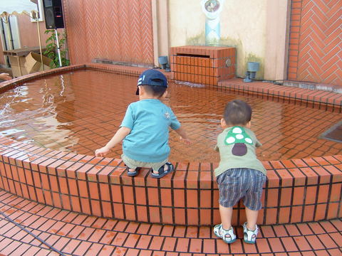 子供らにとっては特に面白いものもなく、池で水遊びを開始。