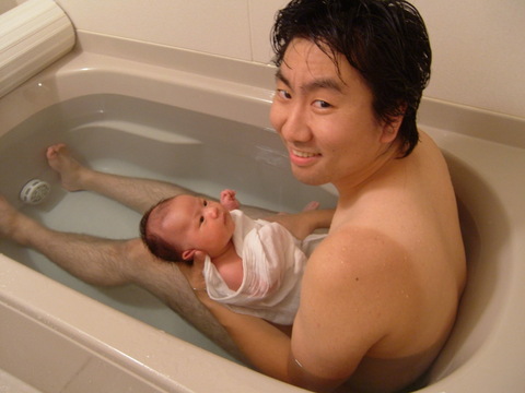 横浜に戻って最初のイベントは、何と言ってもお父さんとの初お風呂♪