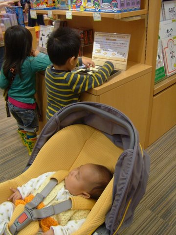 トモコが買い物してる間、おもちゃやで待たされている人たち。