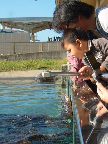 カメがもりもり寄って来てるので凪もややビビリ気味。