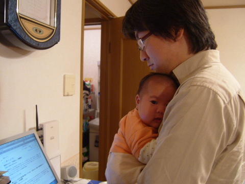 公園→風呂遊び→夕飯と寝る暇を与えないように追い立てて、8時に寝かせてみました。おかげでこんな静かな夜。宝もお父さん独り占め♪