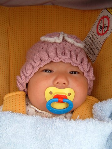 昨日百木野家からいただいてきたおさがりシリーズより、早速帽子を活用♪