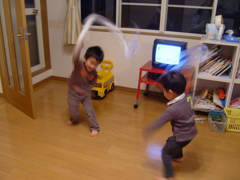 ワクワクさんでやってたのを作ってあげたら、ものすごい勢いで振ってますw