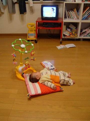 一緒にテレビ見てたはずの兄さんたちは子供部屋に行ってしまったらしく、ひとりじっとテレビ見てる宝さん。