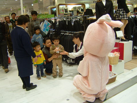 うさぎの着ぐるみとじゃんけん大会。空いわく「うさぎはパーしか出さないから絶対勝てる」んだそうですw