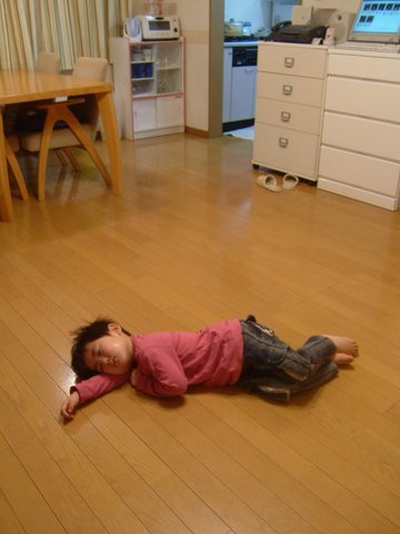 MAX怒られて、空腹とやるせなさで力つきた模様。夕飯は好物ばっかりなんだけどなー。反省してくれないかなー。