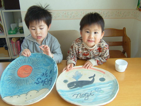 トモコの姉より凪の皿が届きました。やっと陶芸を再開したんだって。宝のは深鉢を製作中。楽しみ♪