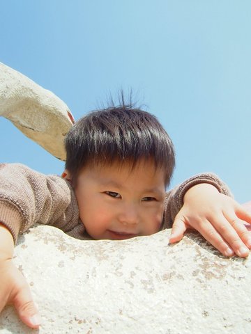 空の登ってた恐竜には登れなくて、もう少し低いのに挑戦中。がんばれ!