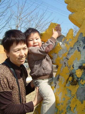 ばーばの補助付きで挑戦。自力で捕まりなさいよぉ。