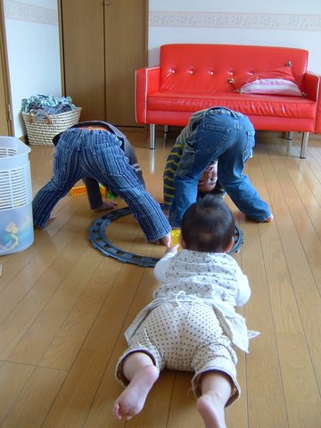 宝に電車を見せてあげてたんだけど、トンネルも披露したくなった兄さま方w