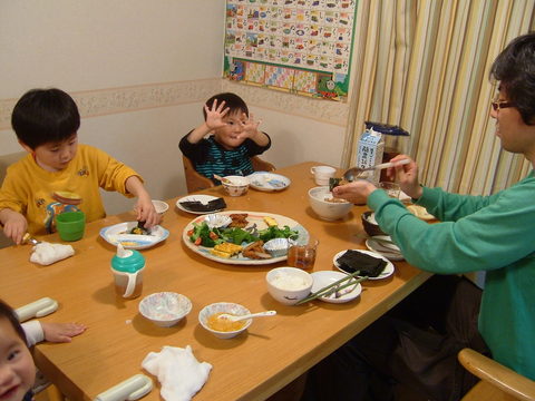 空も凪も自分で巻いて食べられるようになったので、なんか初めて家族でちゃんと巻き巻き楽しんでまっす☆あ、左下隅の彼女も楽しんでまっす♪