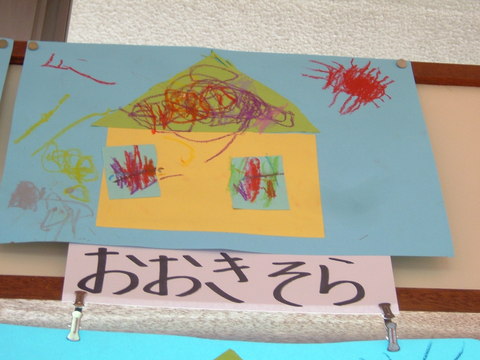 空の作品を撮らせてもらった☆カーテンはいろんな色だときれいだと思ったんですって。