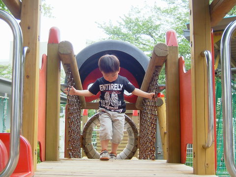 少しずつ幼稚園の遊具を攻略しつつある凪。ホントに入る頃には余裕になっちゃってるんだろうなぁ。