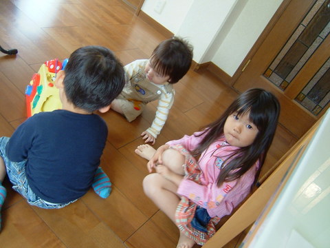 彩音ちゃんとゆうくんと一緒に遊んで待ってます。