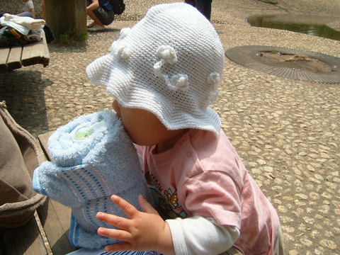 こう暑いと宝だってお茶飲みたくなるよね。早くストロー練習しようね。