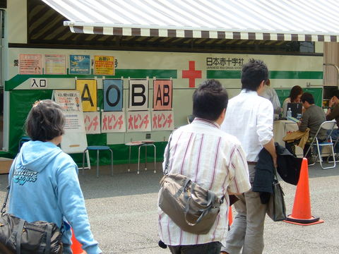 試験場出たら「助けてください!」って赤い字で看板。何かと思ったら献血でした。5月は大ピンチなんだそうです。