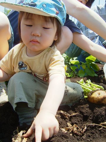 この中にジャガイモが入ってるんだよ。土の中なの。