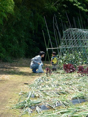 大好きなお兄さんを連れ回して畑を探検する凪。ナスの「な」は凪の「な」って言ってる(はず)。