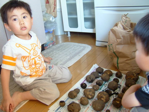 今日は空も幼稚園でジャガイモ掘りしてきたの。26個も掘ってきたよ!と報告中。