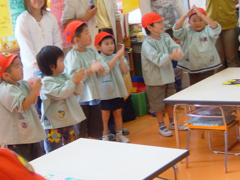 始まりました。まずは朝の体操から。タケノコになってにょきにょき踊ってます。