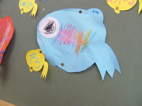 空が虹色に塗ったかわいい金魚さん。背びれにも筋があるのは水族館通いの成果かな?