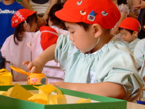今度は糊でぺたぺた。今日の空に笑顔はないぜ!