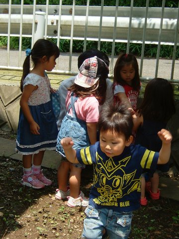 町内会館の脇にある空き地で虫探し。今日の凪は女の子たちともいっぱい遊べました♪楽しかったね☆