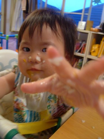 アタチは今日から手で食べることにしたのよ!この手でね!!