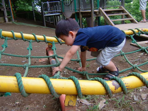 地面まであと2cm!下につかないように渡る、っていう斬新なアスレチックw