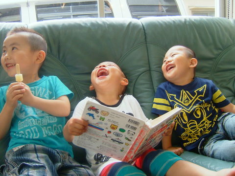 なんのへんてつもないこどもずかんを見て大爆笑のボーズたち。
