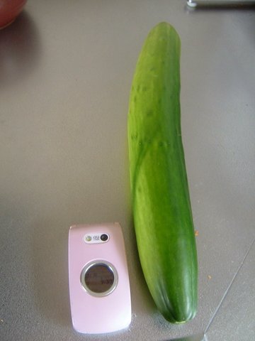 上の畑に行ったらおじさんが凪におばけきゅうりをくれました。