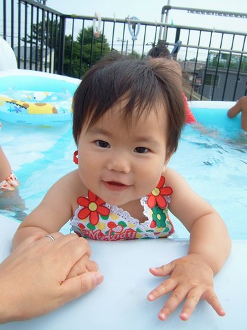 屋上プールでみんなで水遊び♪暑がり宝はお水大好きっこであることが判明!