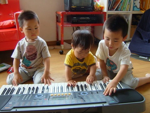 宝はピアノ好きみたい。うーん、おとーさん喜んじゃうぞ♪