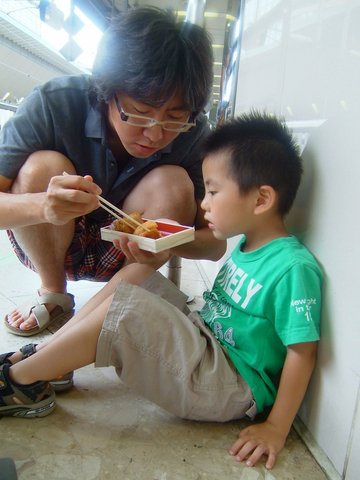 待合室が激混み&冷房効きすぎのため、弁当もホームで電車見ながら食べまっす。