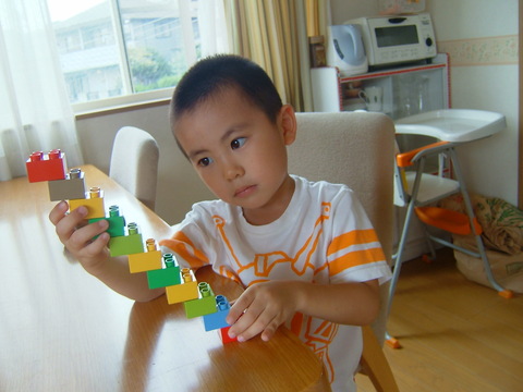 ブロックで階段つくったの。虹の階段なんだよ、きれいでしょ。