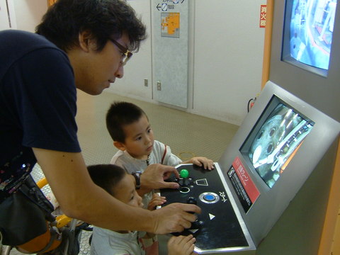 遠隔操作で穴に石を入れる、っていうクレーン操作ゲームとか