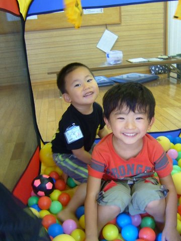 ボールプールはみんなに人気☆凪は男の子同士で遊べて満足そう♪