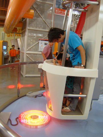 操縦桿でゴンドラを受容器のところまで動かして光を照射するとパラリラ〜ン♪と光る、という実験装置。