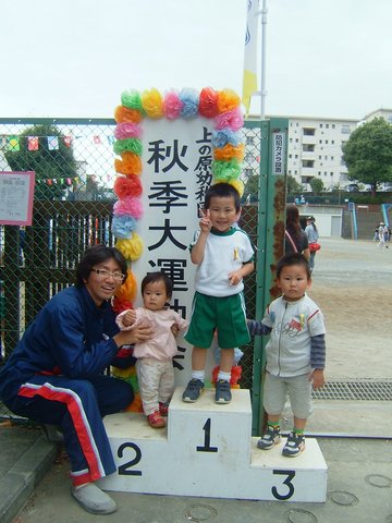 大満足で大興奮のはじめての運動会。よかった。空がんばったね。凪も宝も、ね。