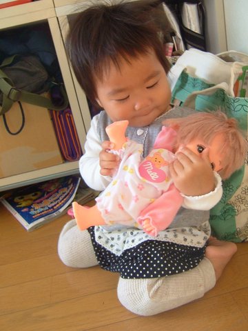 かなりお気に入りのメルちゃん。あーでもないこーでもないしながらご満悦☆