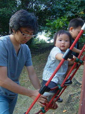 宝もアスレチックに挑戦!といっても、もちろん真吾の補助付き。