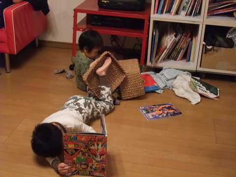 真吾にいつも注意される、この本を読む姿勢も、足癖の悪さも、トモコからの遺伝です・・すまん・・空・・
