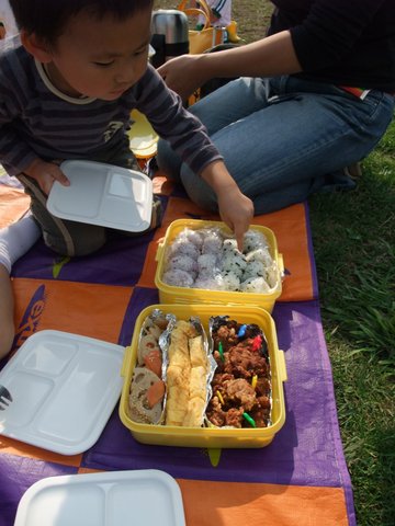 今日のお弁当は空のリクエストメニュー。お外で食べると格別だね。