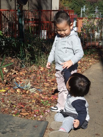 落ちてる木の実を渡して投げてもらう、っていう遊び。