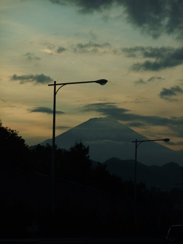 夕暮れ迫る富士を見ながら、今日はこんな時間に出かけます。
