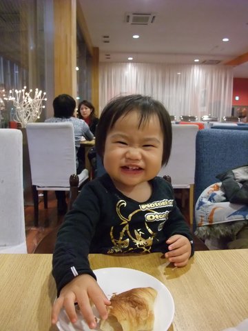 こんな笑顔見せつつもパンはあまり好みではない宝。
