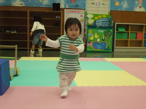 歩き方がすでに楽しそう☆今日はトモコが散髪のため、久しぶりの児童館です。