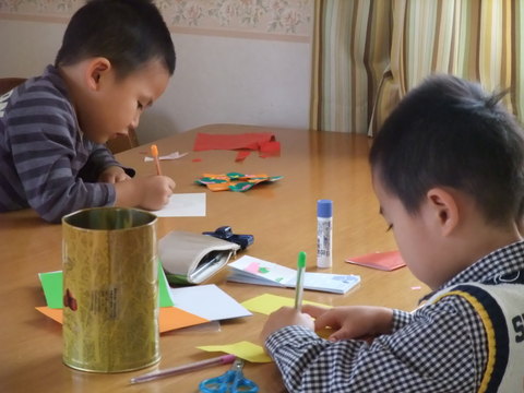 そろそろクリスマスツリーを出すよ、って言ったらいそいそと短冊書いてますw