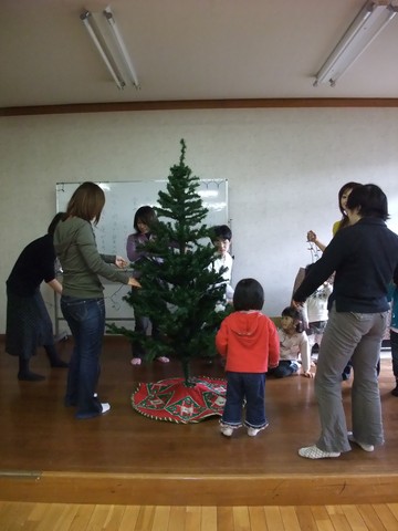 今週はつみきで町内会館のツリーの飾り付け。家にあるのよりかーなーり大きいので飾りがいがあります。